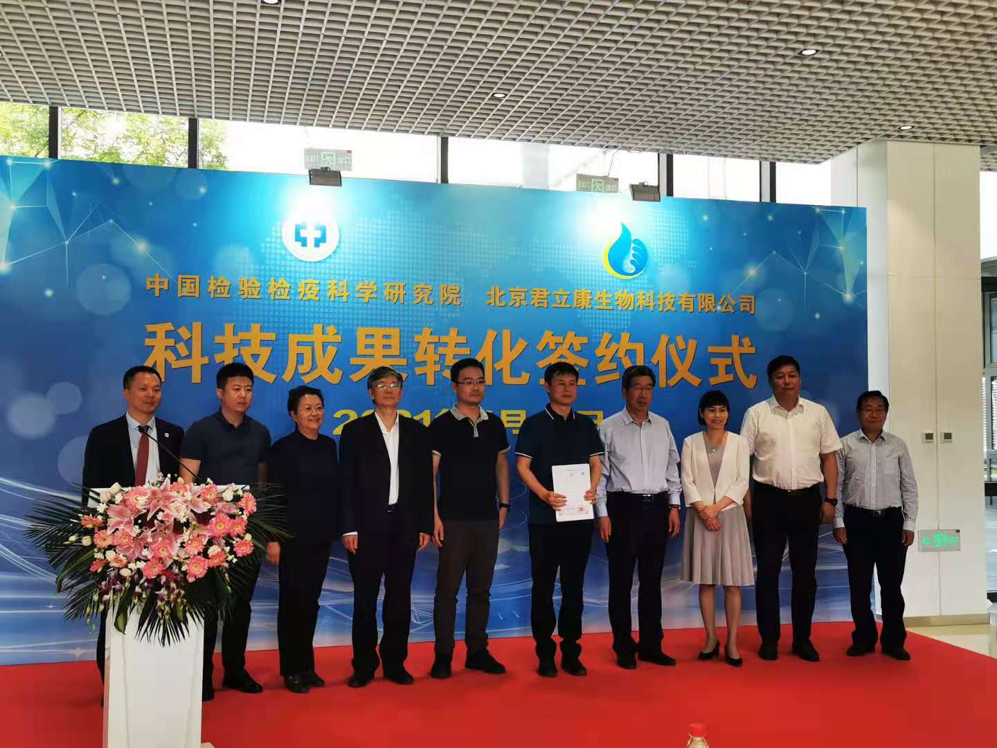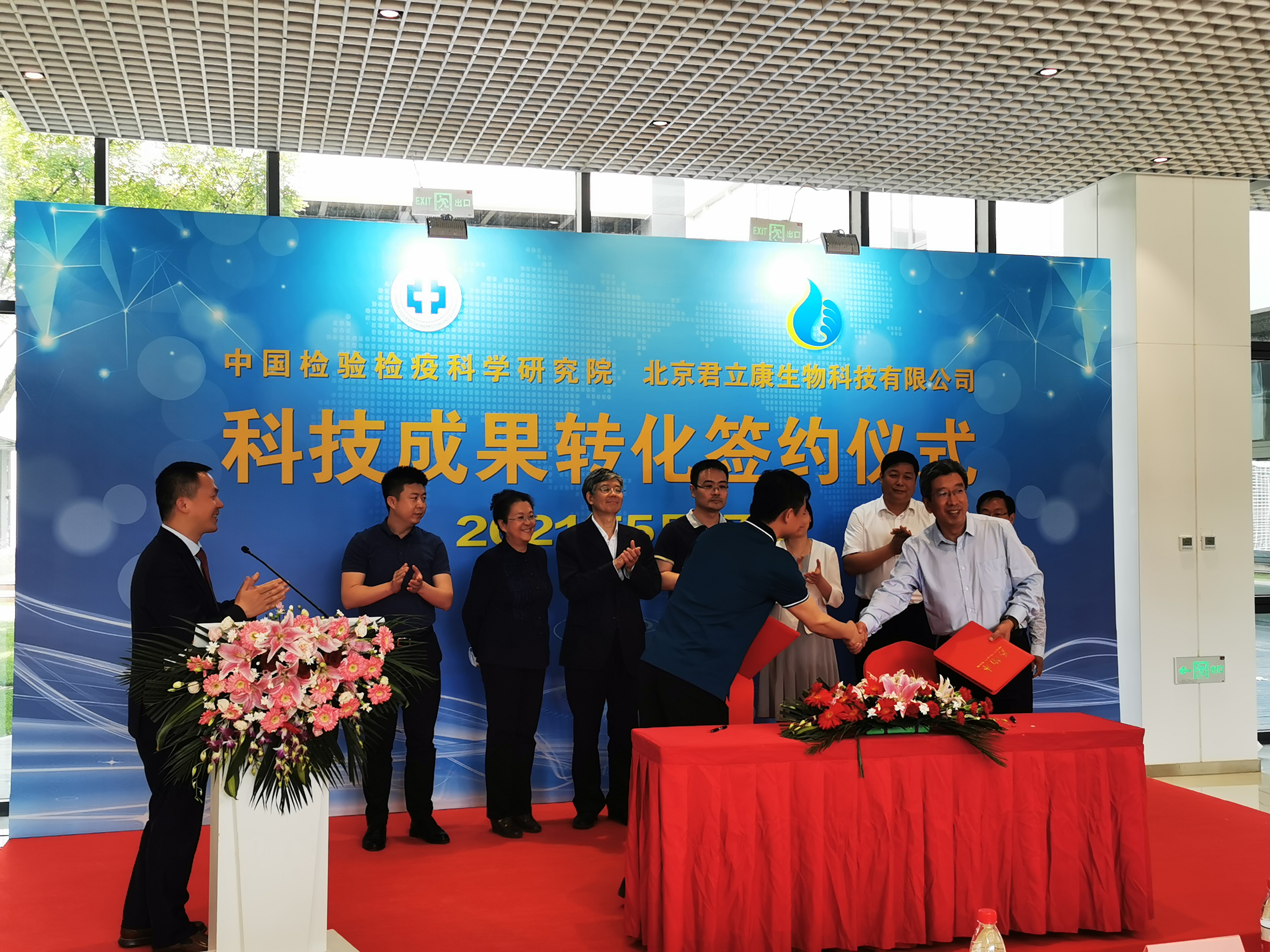 2021年5月17日,北京君立康生物科技有限公司與中國(guó)檢驗(yàn)檢疫科學(xué)研究院簽署科技成果轉(zhuǎn)化簽約儀式在北京自貿(mào)區(qū)創(chuàng)新服務(wù)中心隆重舉行。北京君立康生物科技有限公司厲剛總經(jīng)理、高秀媛副總經(jīng)理、大興區(qū)產(chǎn)業(yè)促進(jìn)處趙敬林副主任、大興區(qū)科委田興華副主任、中國(guó)檢驗(yàn)檢疫科學(xué)研究院科技管理部翟俊峰主任、中國(guó)檢驗(yàn)檢疫科學(xué)研究院農(nóng)產(chǎn)品中心主任范春林、臨空區(qū)管委會(huì)招商局局長(zhǎng)王倫茂等領(lǐng)導(dǎo)親臨簽約現(xiàn)場(chǎng),共同見(jiàn)證并進(jìn)行了簽約儀式。